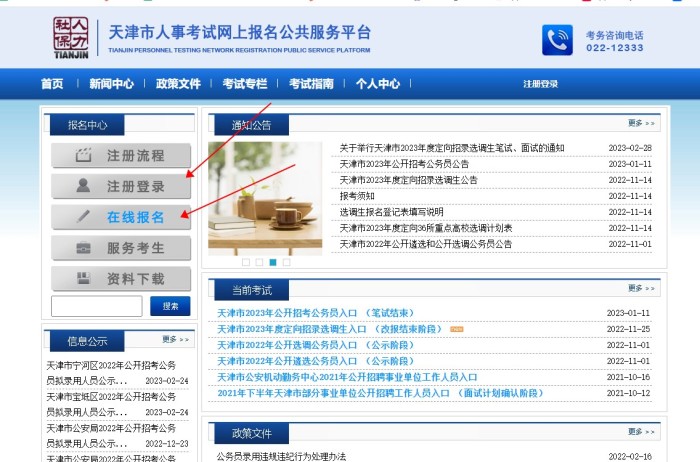 您好,您登录天津市人事考试网上报名公共服务平台后,先进行注册登录,然后在线报名,如下图所示。公考雷达APP祝您成功上岸。